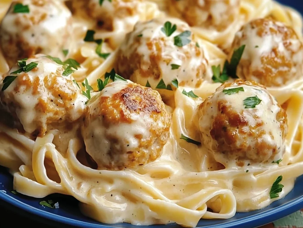 This Alfredo Meatballs recipe is the ultimate comfort food—creamy, cheesy, and loaded with flavor. It’s the perfect dish for a family dinner, a meal-prep option, or even a fancy date-night meal. With tender, garlicky chicken meatballs coated in a homemade Parmesan Alfredo sauce, every bite is pure satisfaction.