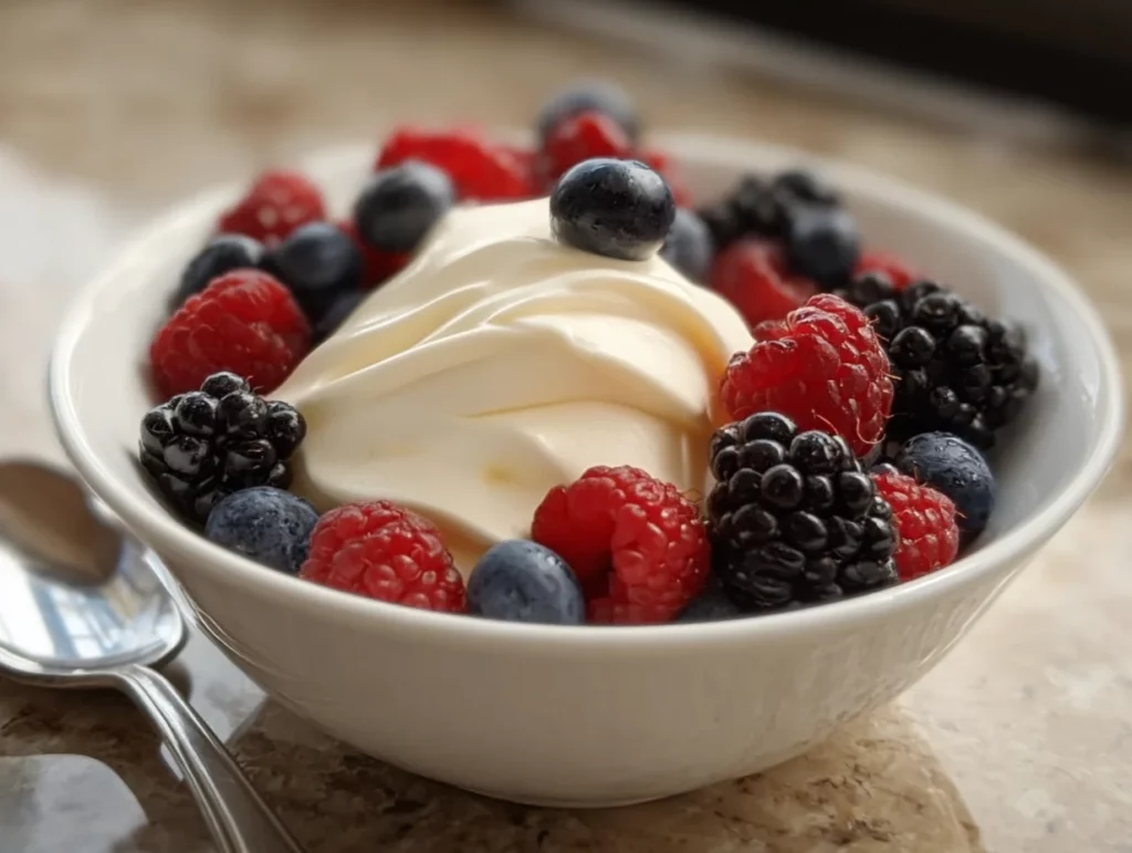 Once it’s mixed and chilled, we’ll top it with fresh berries that bring a bright, slightly tart contrast to the rich creaminess underneath. Whether you’re serving this for a dinner party or just treating yourself to something a little fancy at home, the results are totally worth it.