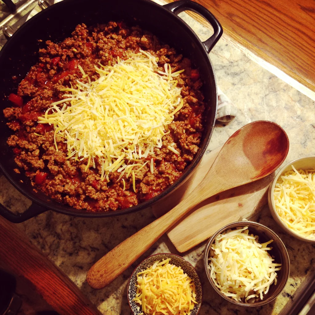 Stir in the shredded cheeses until evenly combined with the beef mixture.