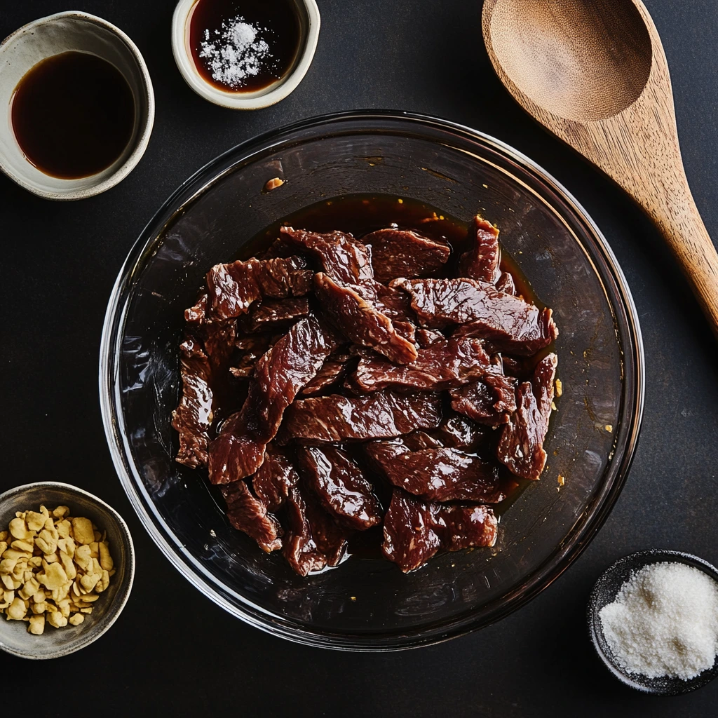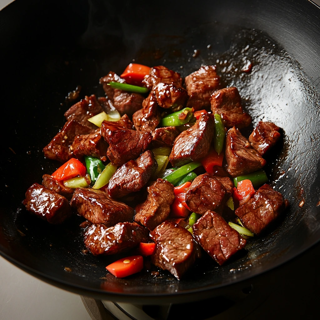 Let it sear for 2–3 minutes without stirring to allow a nice caramelization to develop. Then, flip the slices and cook for another 2–3 minutes. Since the beef is thinly sliced, it cooks quickly, so keep an eye on it to avoid overcooking.