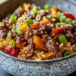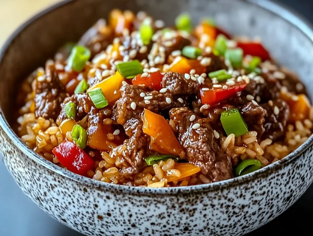 This savory and colorful rice bowl is packed with tender beef, crisp bell peppers, and aromatic seasonings. A perfect balance of protein, vegetables, and rice, it’s a quick and satisfying meal for any time of the day.