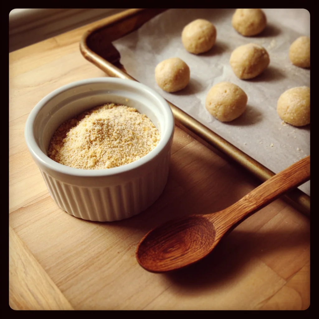 Now, here’s where you can add a little extra flair: roll each dough ball in graham cracker crumbs before placing them on the baking sheet. This step is optional, but highly recommended. The crumbs give that nostalgic nod to a traditional cheesecake crust, and they add a subtle crunch that balances the soft texture inside.