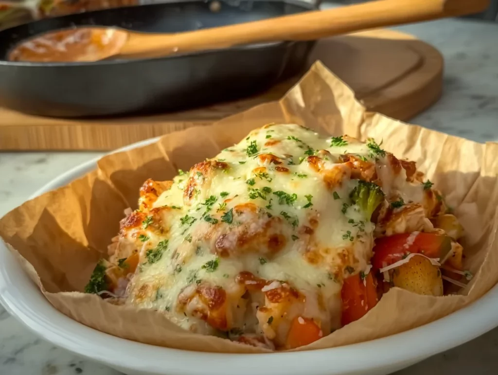 Cheesy Chicken Veggie is a one-pan comfort meal packed with tender chunks of chicken, colorful vegetables, and a generous amount of melted cheese. It’s a balanced dish that delivers both flavor and nutrition in every bite. Great for weeknight dinners, it comes together quickly with minimal cleanup and can be customized with whatever veggies you have on hand.