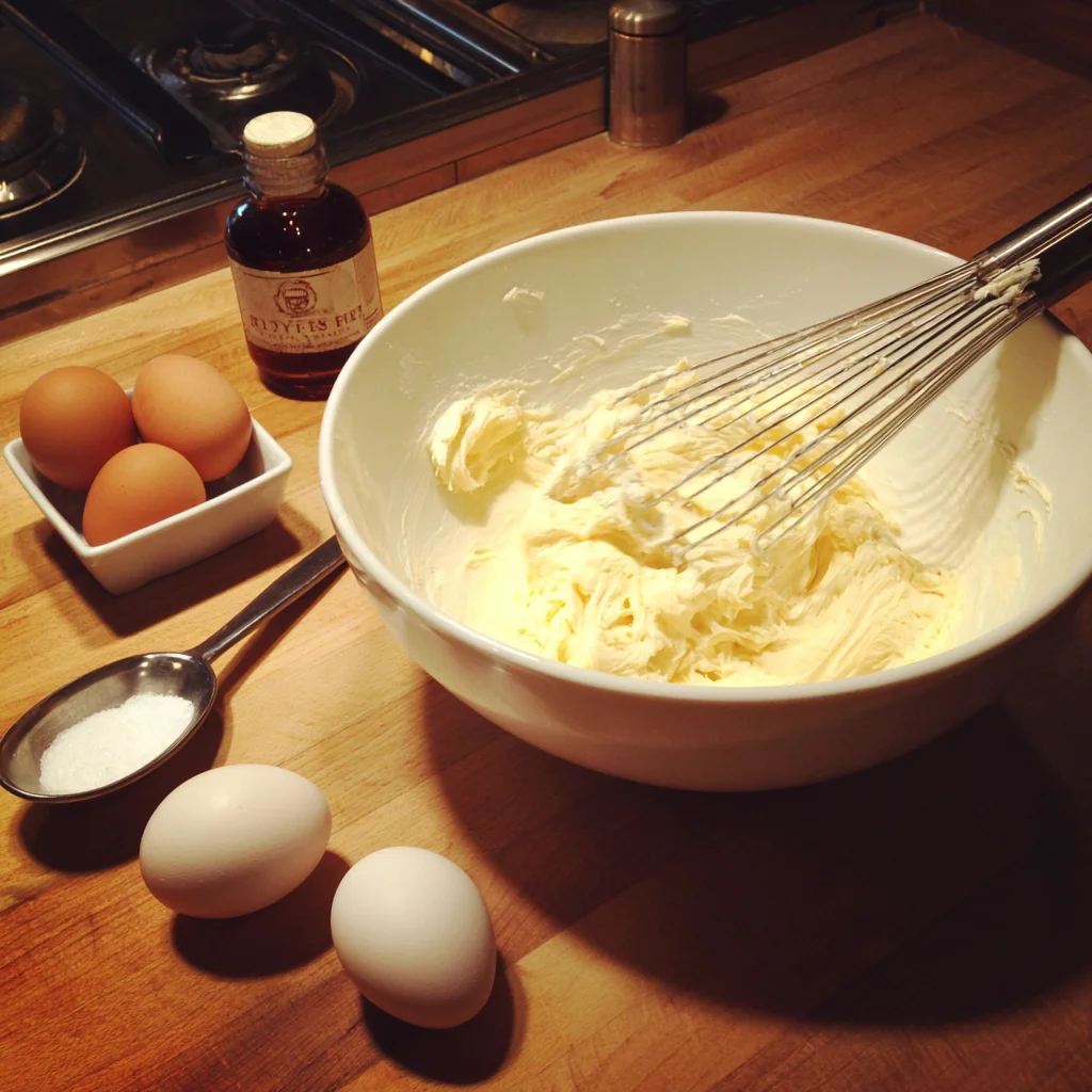 Once your butter and sugar mixture is creamy, add the eggs one at a time, mixing well after each addition. Don’t rush this step—make sure each egg is fully incorporated before moving on. Then, stir in the vanilla extract.