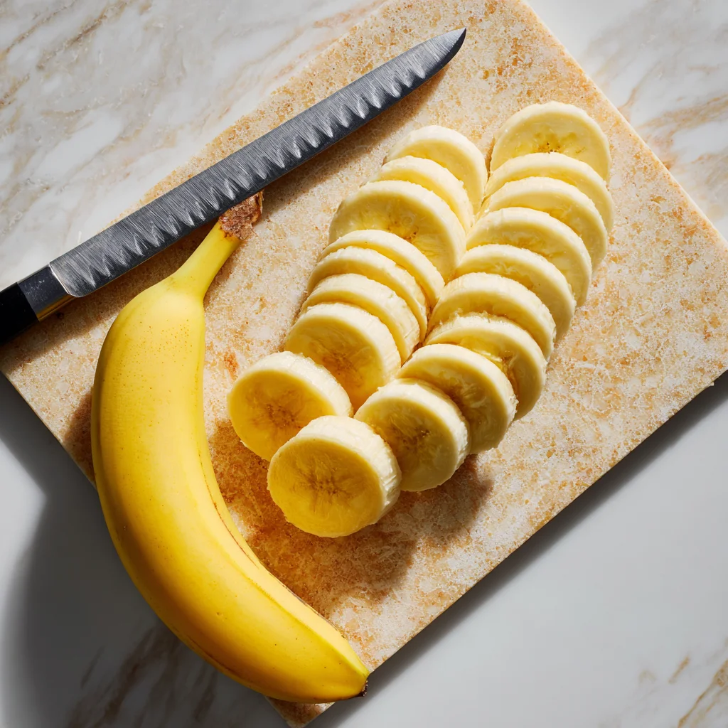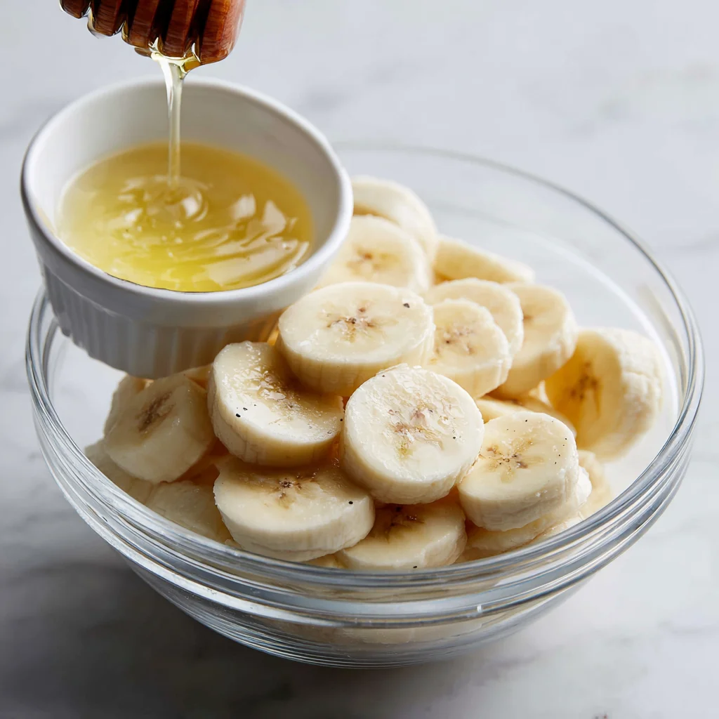 3 Gently toss the banana slices with lemon juice to prevent browning.
