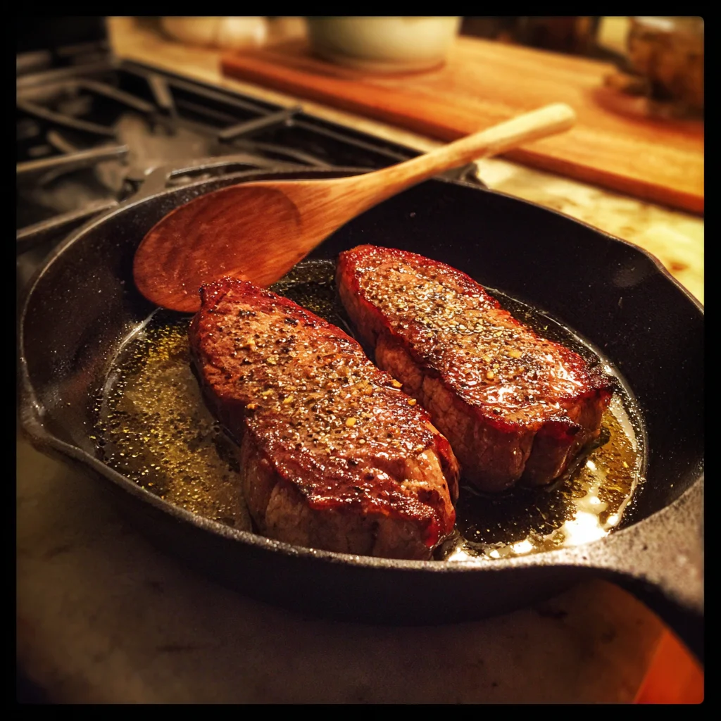 Place your steaks into the hot skillet and let them cook undisturbed for about 3 to 4 minutes per side. Don’t move them around too much—you want that caramelized, golden crust to form. Cook until your desired doneness is reached. If you’re unsure, a meat thermometer is a great tool to have handy. Aim for 130°F for medium rare or 140°F for medium.
