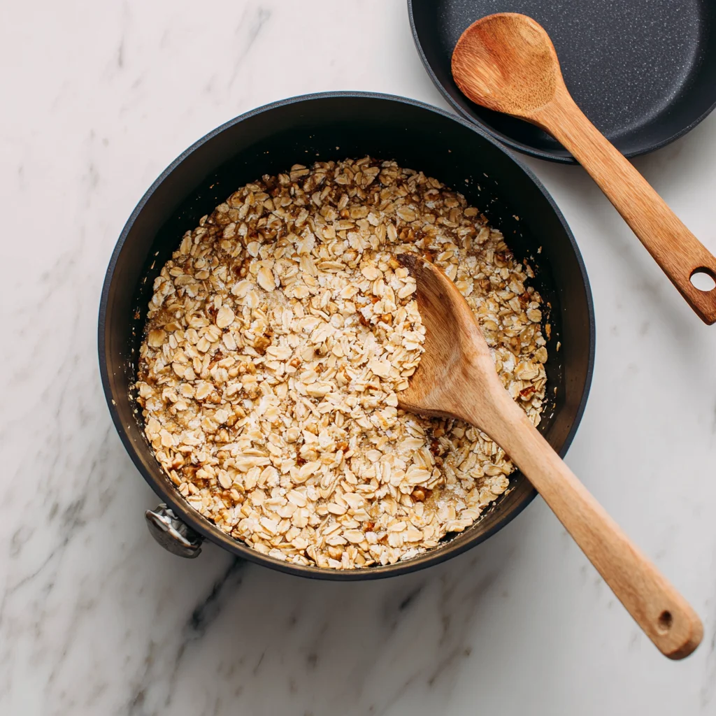 Now, pour in the rolled oats and chopped nuts, mixing until every oat is coated in that peanut butter-honey goodness. It might take a little elbow grease, but trust me, it’s worth it.