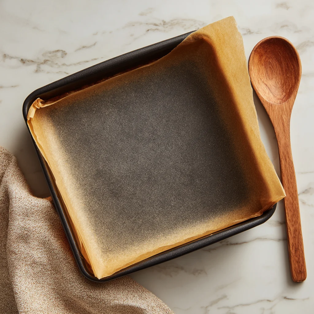 First things first, line an 8×8-inch baking pan with parchment paper. I like to leave some overhang on the sides so it’s easy to lift the bars out once they’re set. You don’t want any sticking—it makes cleanup way easier, too.