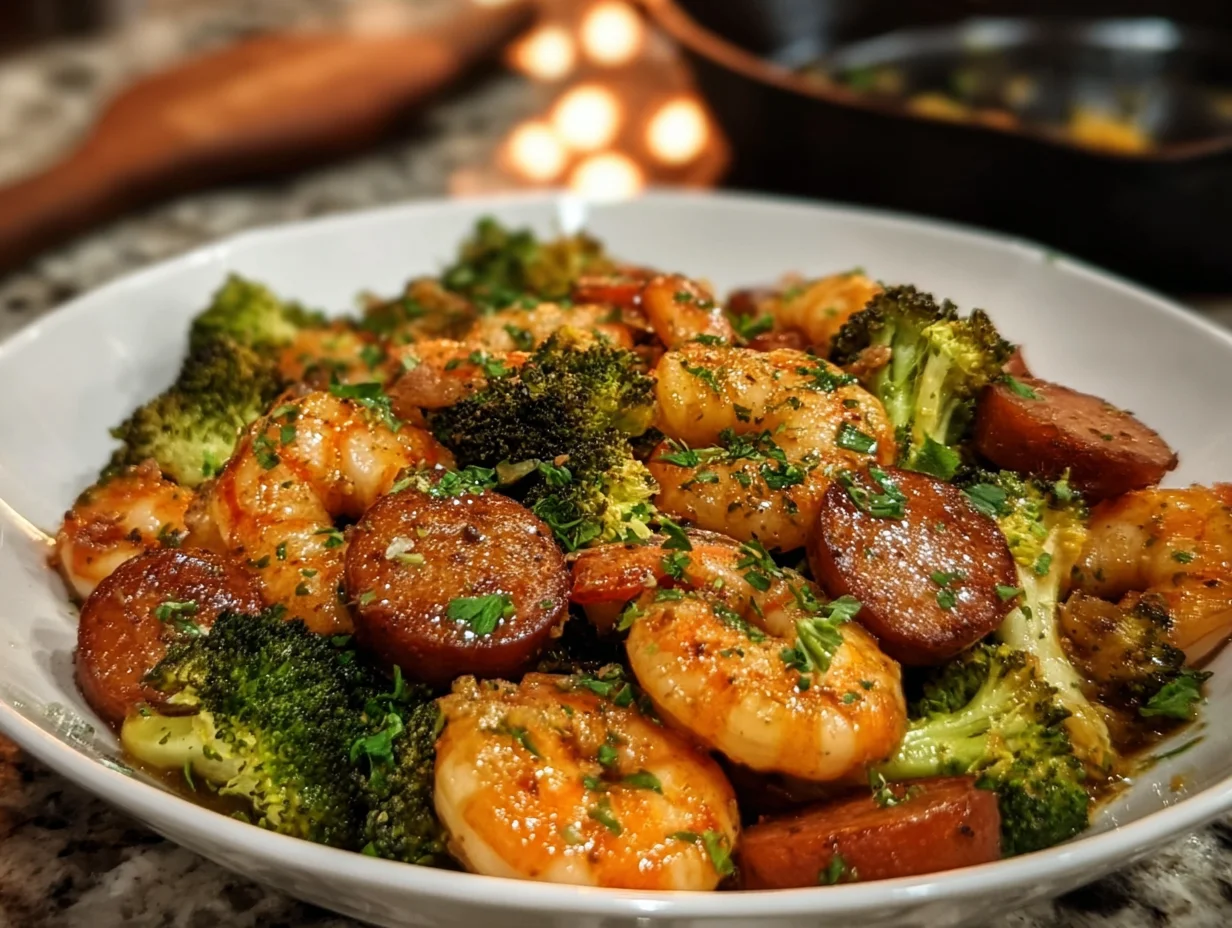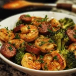 This Honey Garlic Shrimp, Sausage, and Broccoli dish is a quick and flavorful stir-fry-style meal that comes together in one skillet. Sweet and savory honey garlic sauce coats juicy shrimp, smoky sausage slices, and tender broccoli, making it a balanced dinner packed with protein and vegetables. It’s perfect for busy nights when you need something hearty, healthy, and fast.