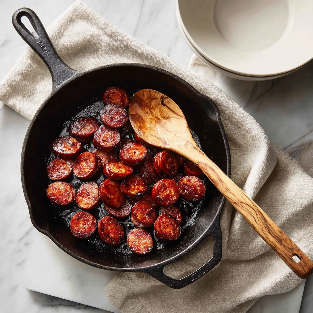 Heat a tablespoon of olive oil in a large skillet over medium-high heat. Once it’s hot, toss in your sliced sausage. Cook for 3 to 4 minutes, letting them get nice and browned on the edges. That bit of crispiness brings out the smoky flavor, and it’s totally worth the extra couple of minutes.