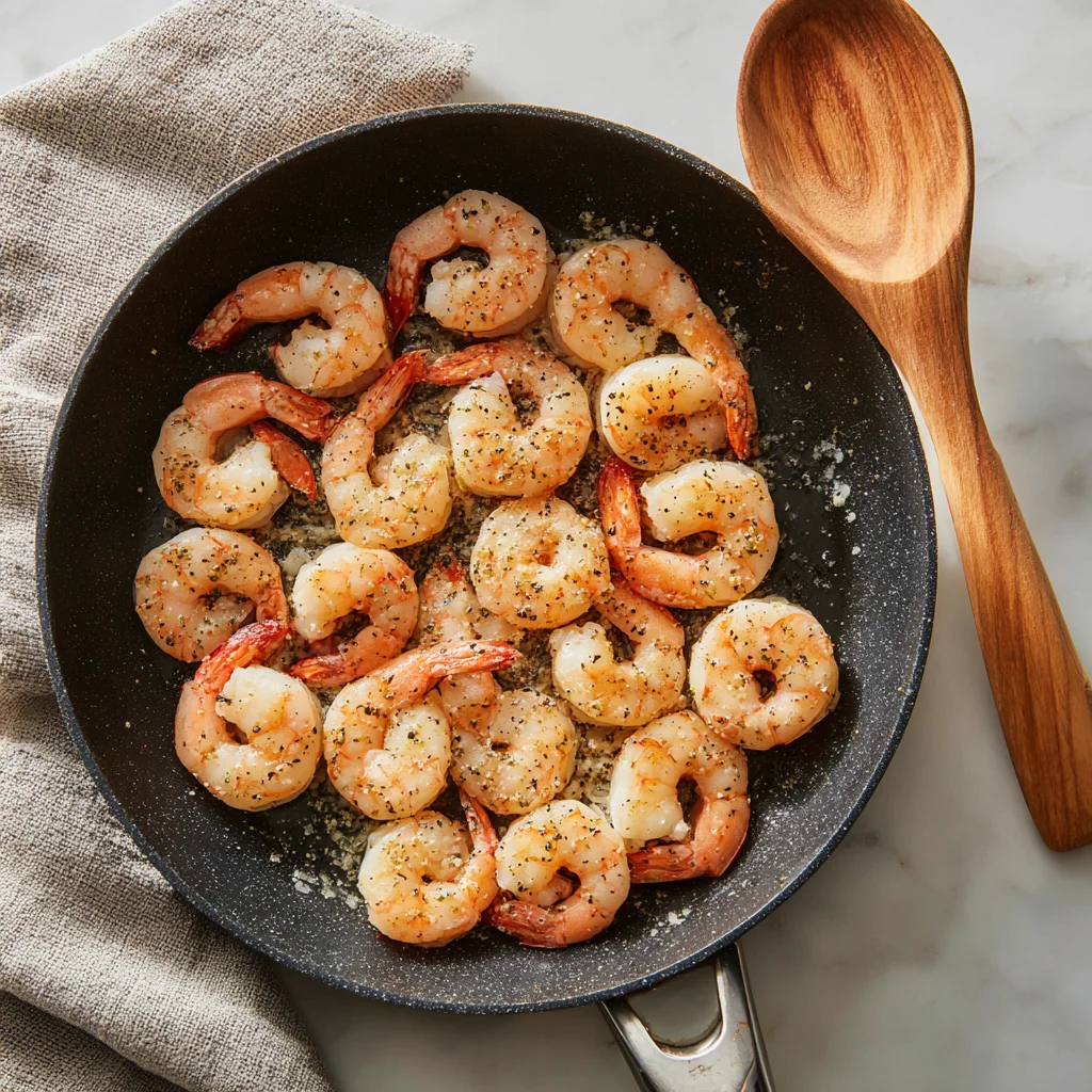 Now it’s shrimp time! Add the peeled and deveined shrimp right into the skillet. Season lightly with salt and black pepper, and cook them for 2 to 3 minutes per side. You’ll know they’re ready when they turn pink and opaque – no need to overcook them. Shrimp cooks super fast, so keep an eye on them!
