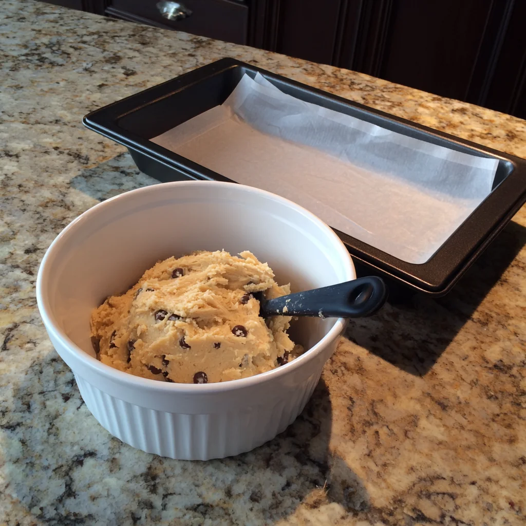 Take the first half of your dough and press it evenly into the bottom of your greased pan. Don’t worry if it seems like it’s not enough—it will spread a bit as it bakes.