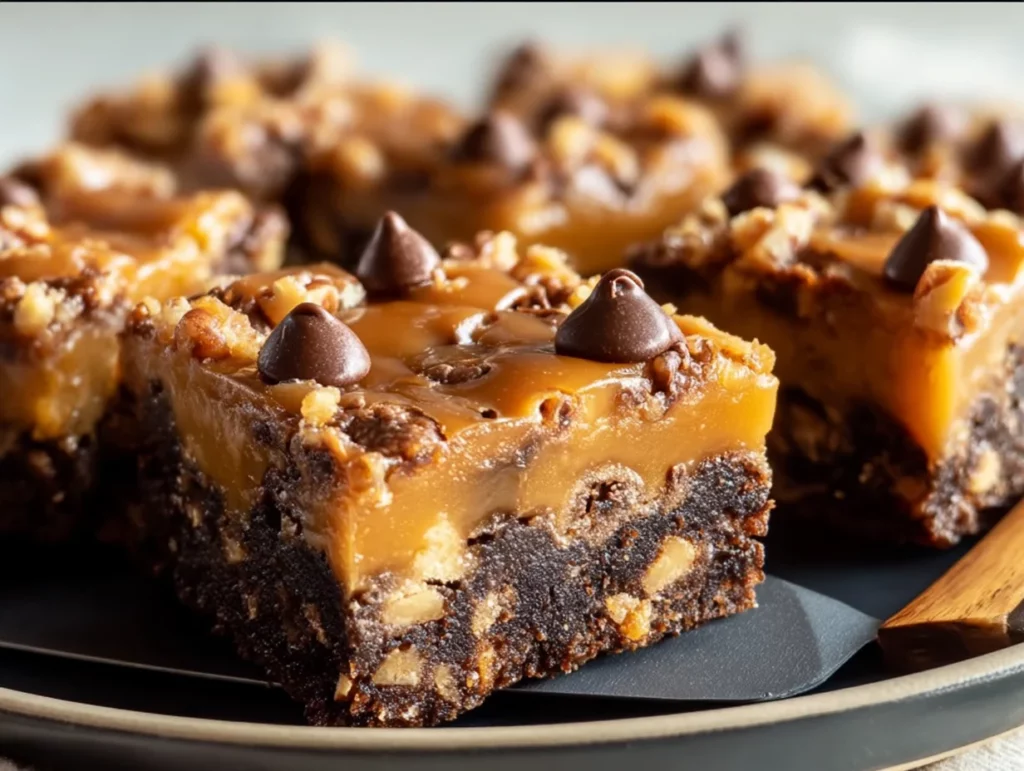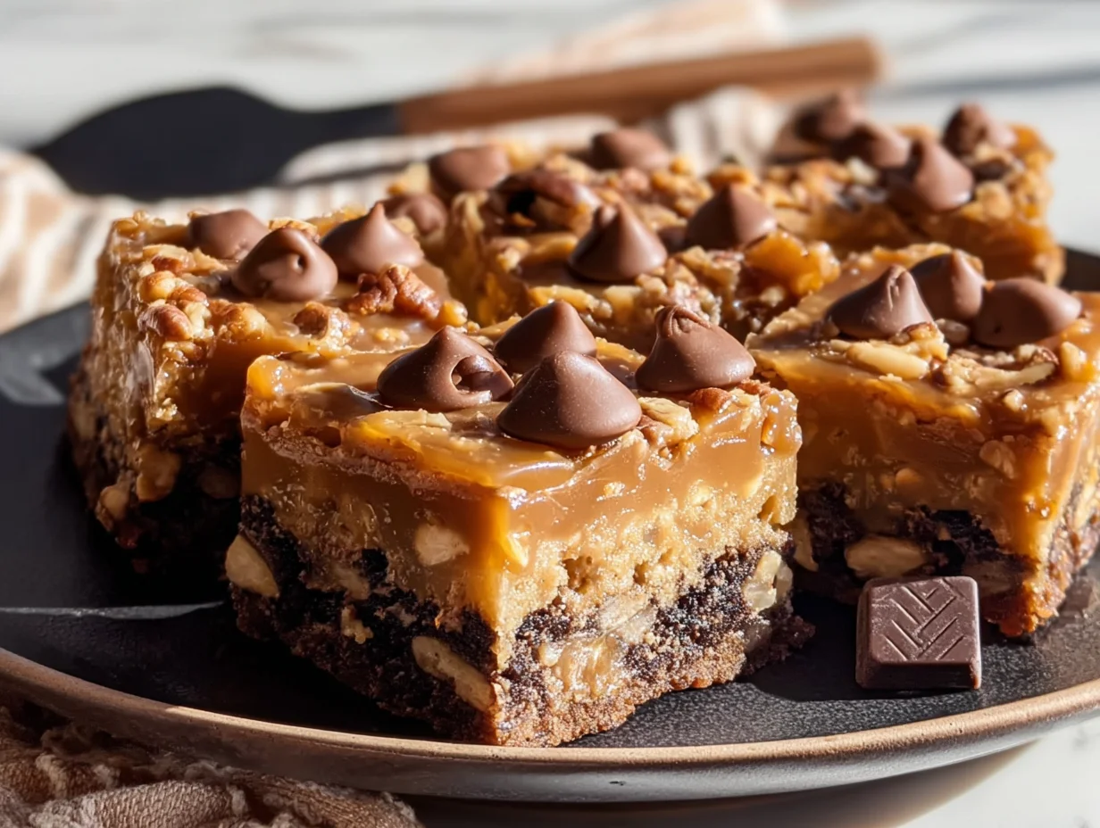 What makes them so special? It’s all about the layers. You’ve got a chewy brown sugar base made from German chocolate cake mix, a generous ribbon of buttery caramel, gooey chocolate chips, and just enough nuts for crunch (if that’s your thing). The top layer is patched on like a cozy blanket, letting the caramel peek through in the most irresistible way. Best part? They’re crazy simple to make.