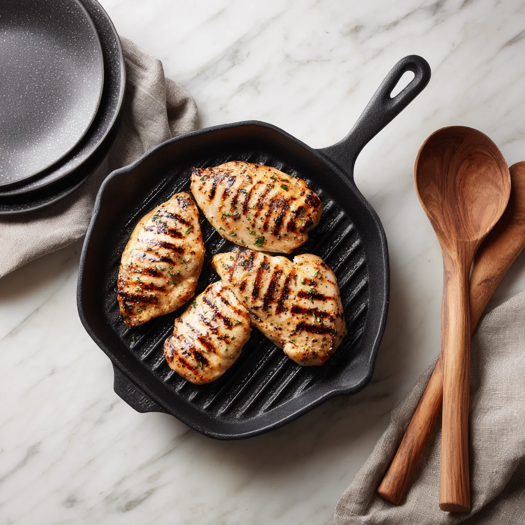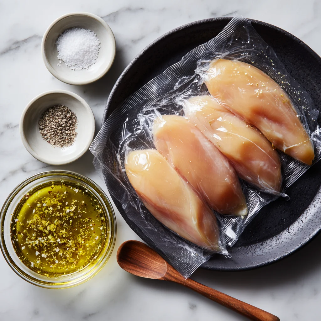 Place your chicken breasts between two pieces of plastic wrap or parchment paper and pound them to an even thickness. This helps them cook evenly and stay juicy. Don’t skip this step—uneven chicken = dry chicken.