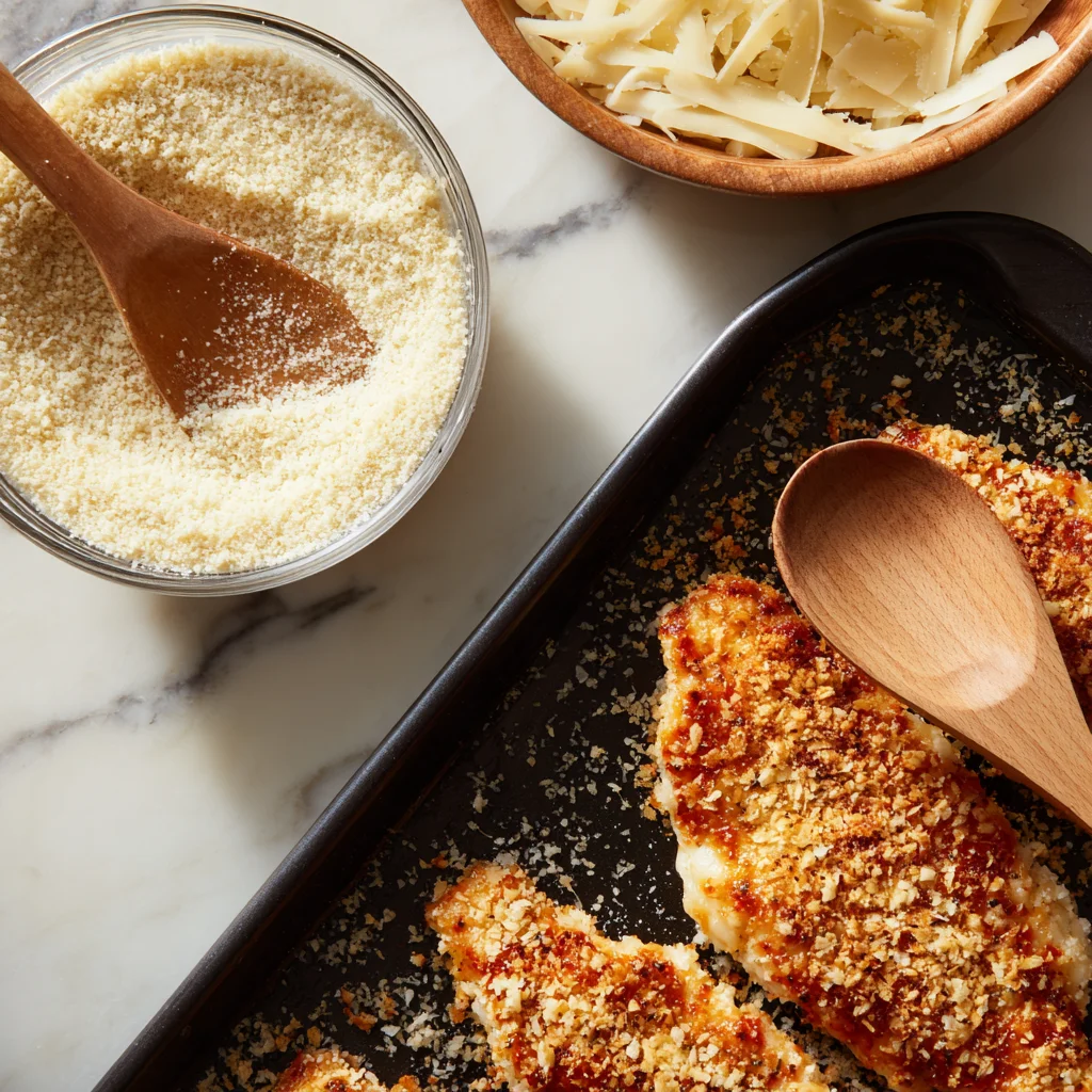 Welcome back! So far, we’ve marinated our chicken, grilled it to juicy perfection, and now it’s time for the real star of the show—the cheesy, golden Parmesan crust. This topping is what takes this dish from great to next level, and the best part is, it’s super easy to put together with just a handful of ingredients.