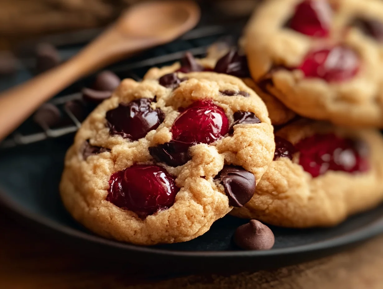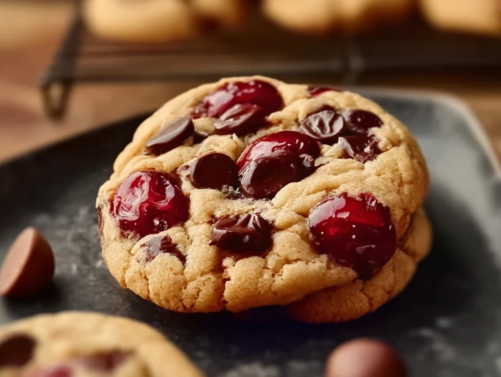 Tip: If you like picture-perfect cookies, press a few extra chocolate chips and cherry pieces on top of each dough ball before baking. It gives them that “bakery-style” look!