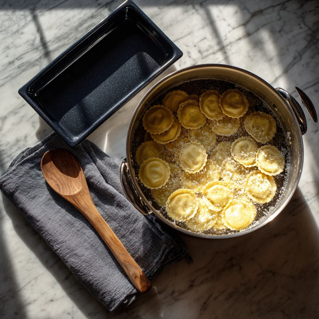 1️⃣ Cook the ravioli: Bring a large pot of salted water to a boil. Add the cheese ravioli and cook according to package instructions, usually about 4–5 minutes. Drain and set aside.