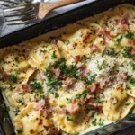 This Olive Garden-Inspired Ravioli Carbonara brings the creamy, smoky, and savory flavors of the restaurant favorite straight to your kitchen. Cheese-filled ravioli are coated in a rich Parmesan cream sauce, tossed with crispy bacon, and finished with a touch of garlic and black pepper. It’s a luxurious yet easy-to-make pasta dish that’s perfect for family dinners or impressing guests with minimal effort.