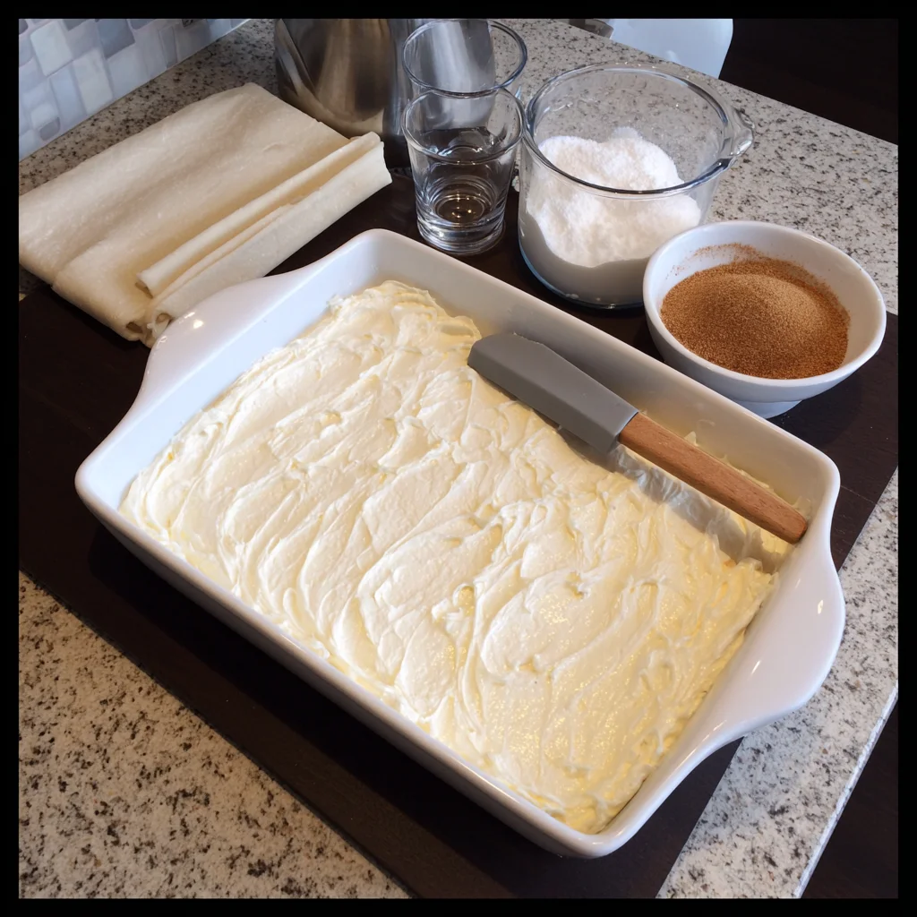 Alright, now that we’ve built that dreamy cream cheese layer, it’s time to finish assembling and bake these irresistible churro cheesecake bars. This next part is where all the magic happens—flaky dough, buttery topping, and that warm cinnamon-sugar crunch that makes it feel like you’re biting into a freshly made churro… only better, because there’s cheesecake involved.