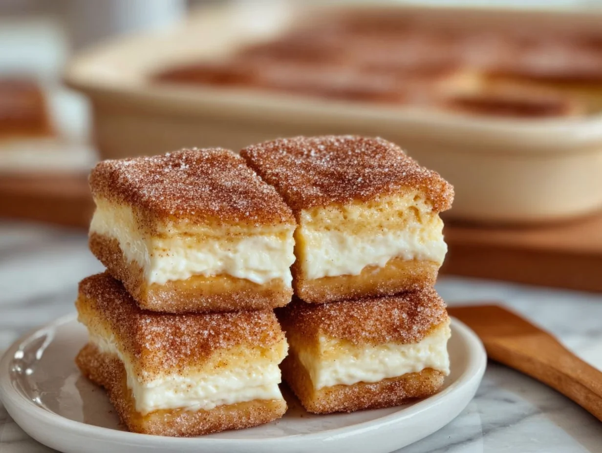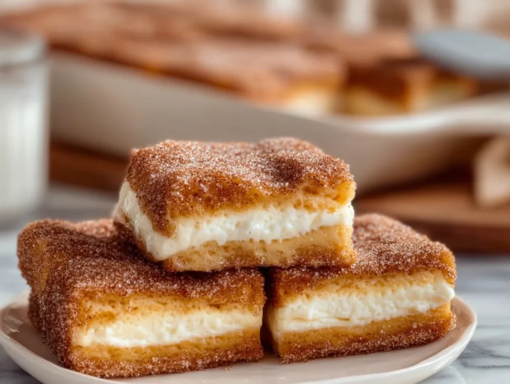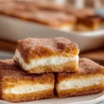 I remember the first time I brought these bars to a family barbecue. I didn’t even get a chance to grab one before the tray was empty! That’s when I knew I had to keep this recipe in rotation. It’s the ultimate mash-up of churros and cheesecake—a flaky, buttery base, smooth vanilla cream cheese filling, and a golden, crunchy cinnamon-sugar topping that tastes just like your favorite carnival treat.