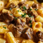 Slow Cooker Creamy Garlic Beef Pasta is the ultimate comfort food, perfect for those looking for a meal that’s both hearty and easy to make. This dish combines tender pieces of beef with a rich, creamy garlic sauce, all mixed together with pasta for a filling and satisfying meal. With the use of simple ingredients like cream of mushroom soup, heavy cream, and Parmesan cheese, this recipe brings a rich depth of flavor that tastes like it took hours of work.