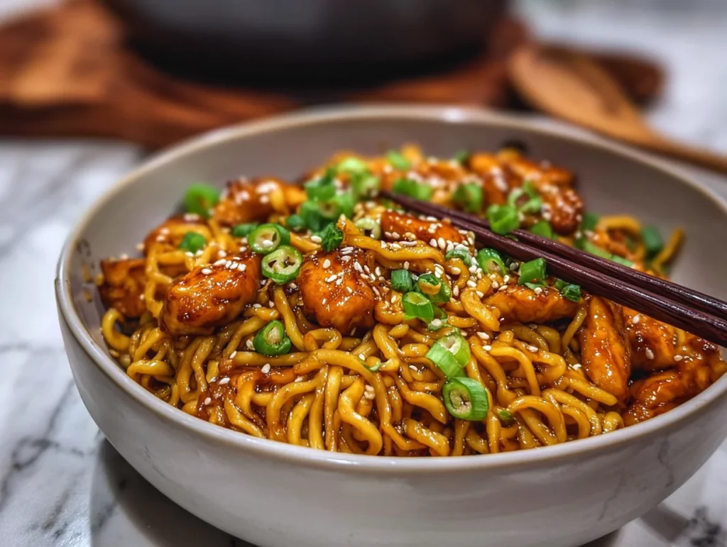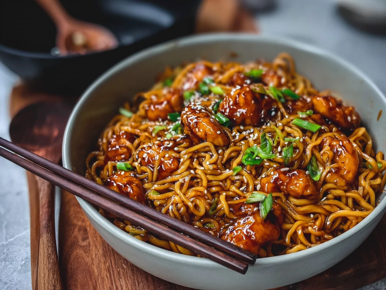 If there’s one thing I know for sure, it’s this: nothing beats a big bowl of sticky garlic chicken noodles after a long day. This recipe is that magical blend of quick, comforting, and totally crave-worthy. Think juicy chicken coated in a glossy, sweet-savory garlic sauce, tossed with tender noodles and finished off with a sprinkle of green onions and sesame seeds. It’s the kind of dish that tastes like it came from your favorite takeout spot—but even better, because you made it yourself.
