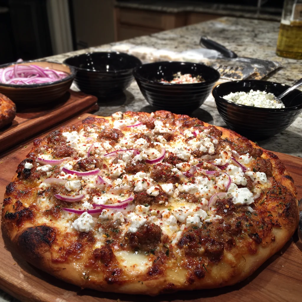 This Sweet & Spicy Hot Sausage Feta Honey Pizza is a bold, flavor-forward twist on traditional pizza. It brings together the heat of spicy sausage, the tang of creamy feta, and the rich sweetness of honey over a crisp, golden crust. Balanced with the savory notes of mozzarella and a punchy tomato base, each bite delivers a satisfying contrast of flavors. Ideal for a gourmet pizza night at home or to impress guests with something unexpected.