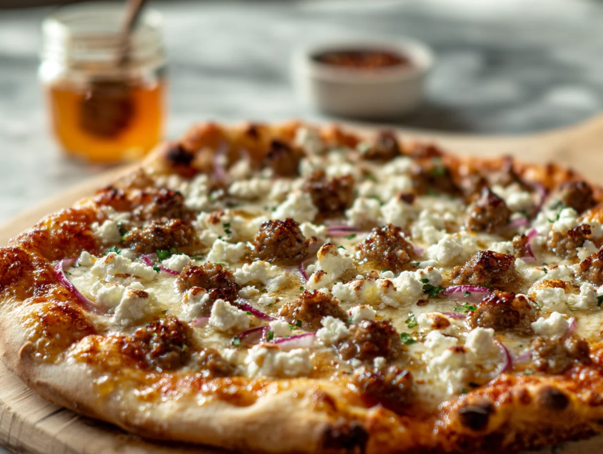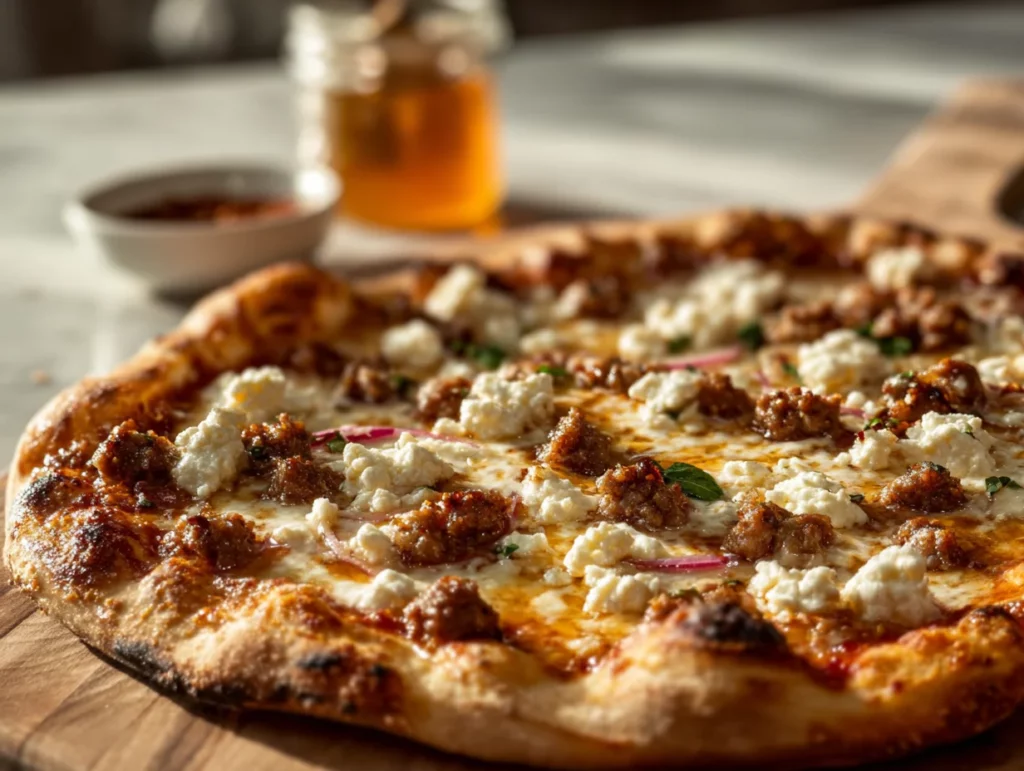Sweet & Spicy Hot Sausage Feta Honey Pizza