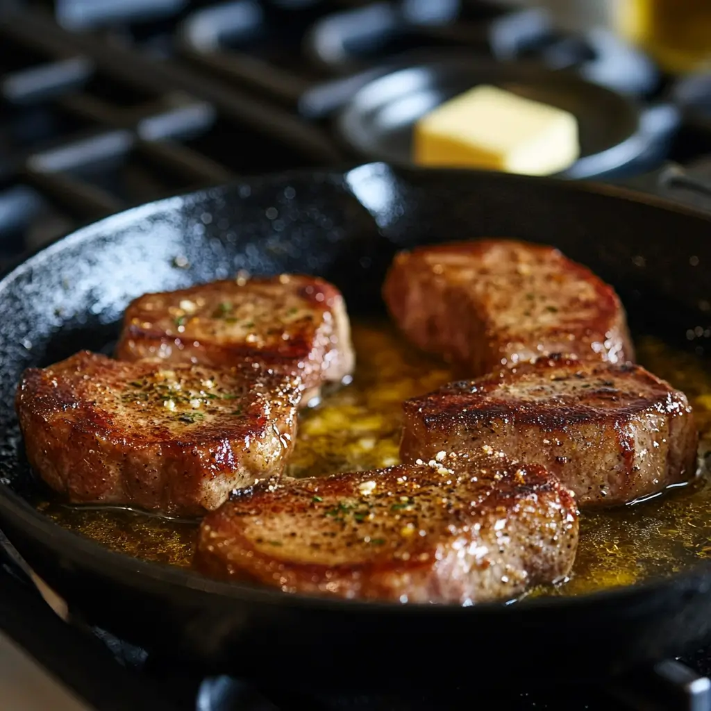 ✔️ Juicy & Flavorful Beef Chops – Seared to golden-brown perfection and basted in garlic butter.