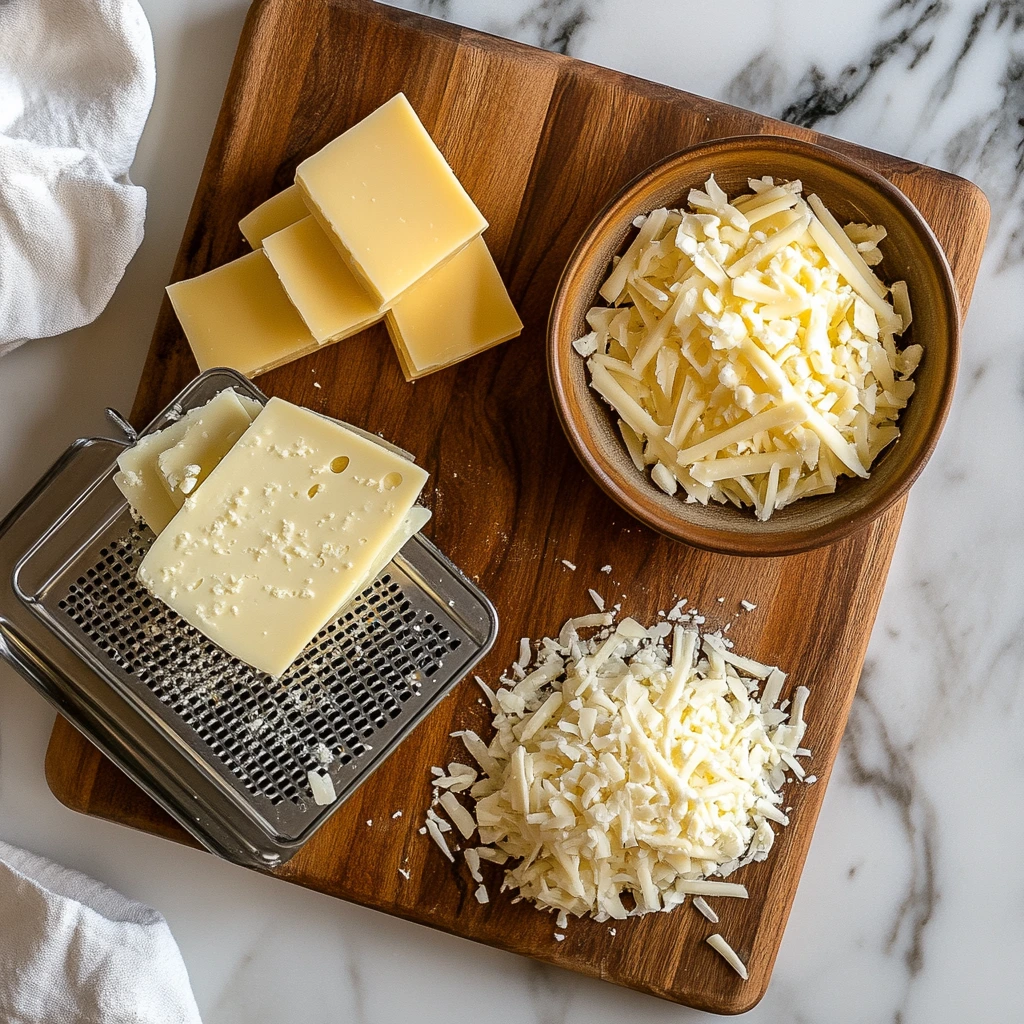 Cheese is the heart and soul of this dish, so you’ll want to get it prepped first. Grab your mozzarella, Colby Jack, and sharp cheddar, and start grating. (Pro tip: Freshly grated cheese melts better than pre-shredded!) Once grated, divide your cheesy mountain into two piles: one for the sauce and one for that irresistible topping.