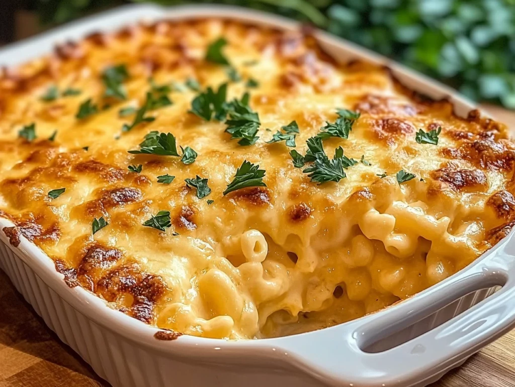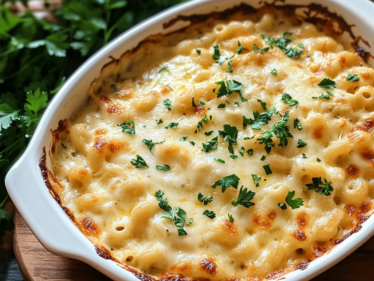 This rich and creamy mac and cheese combines a medley of cheeses with perfectly seasoned pasta for an indulgent dish. It’s baked to golden perfection and finished with a sprinkle of fresh parsley for the ultimate comfort food experience!