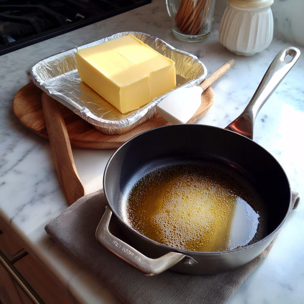 In a small saucepan over medium heat, melt the ½ cup of unsalted butter. Keep an eye on it, swirling the pan gently as the butter foams and then starts to deepen in color. You’re looking for a golden brown hue and a nutty aroma. Once it’s ready, remove it from the heat and let it cool slightly. (Pro tip: Make a little extra and save some for pancakes or cookies—it’s liquid gold.)