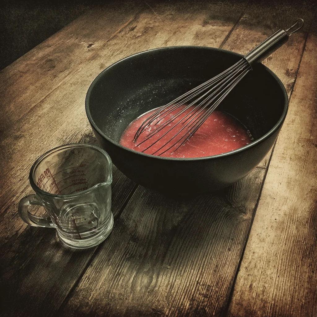 3️⃣ In a separate bowl, combine the sugar, eggs, vegetable oil, watermelon puree, and vanilla extract. Mix until smooth.