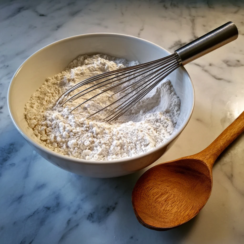2️⃣ In a large bowl, whisk together the flour, baking soda, baking powder, and salt.
